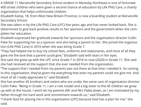 Elisabeth Determined to give back to PNG