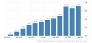 In simple terms, the CPI measures the cost of living. This chart shows you what you already know. The cost of living is increasing quite steeply.